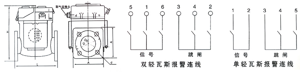 注:帶有接頭的氣體繼電器(俗稱G型產品)與取氣盒配套使用,定貨時提出要求,否則均不帶接頭。