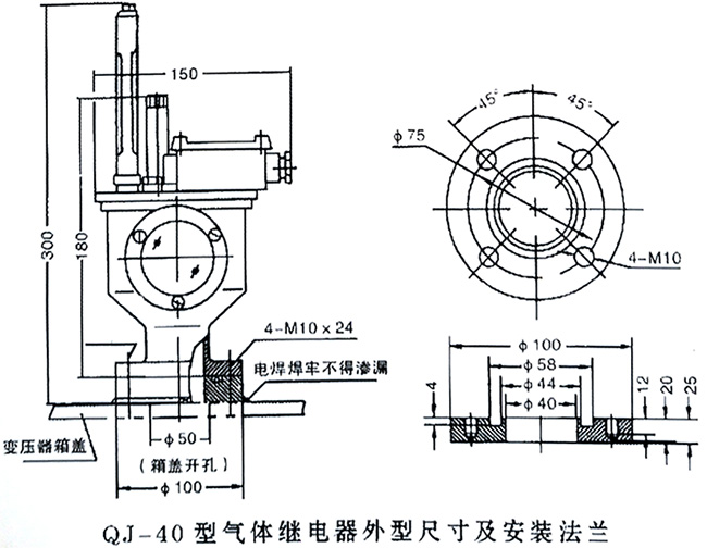QJ-40型氣體繼電器是油浸式全密封變壓器的一種保護裝置。安裝在變壓器箱蓋上。